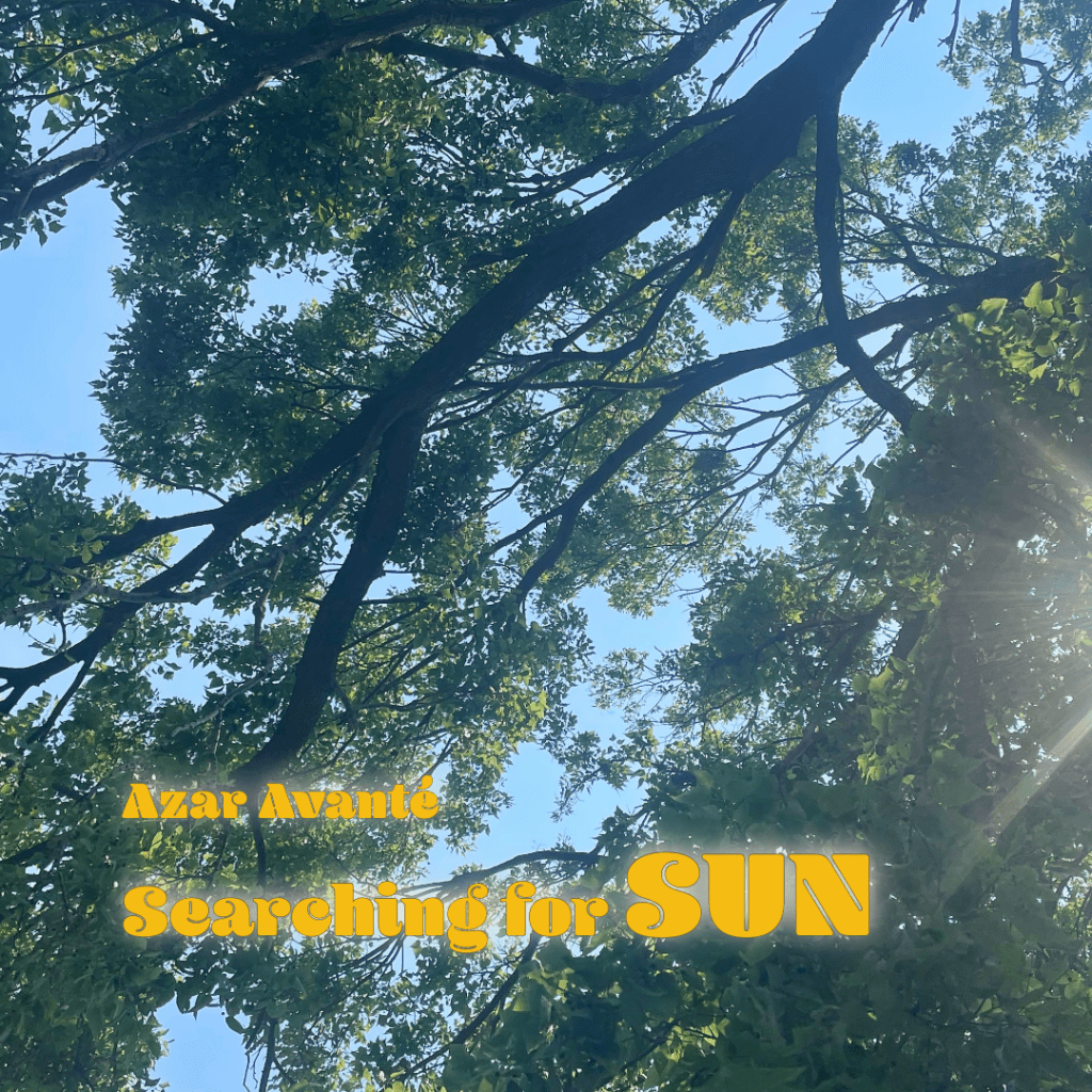 Front cover mockup for a forthcoming publication, Searching for Sun, about the spiritual dimensions of connecting to self, community, and aligned purpose as a nonbinary trans person.